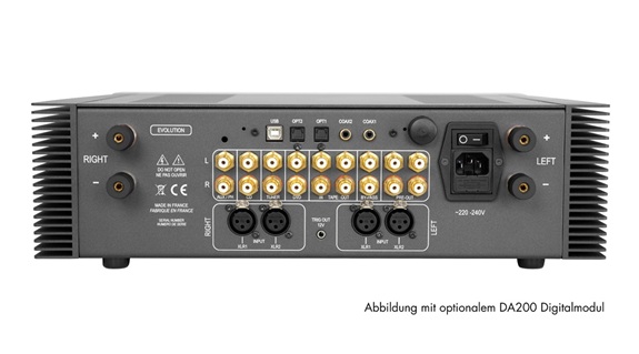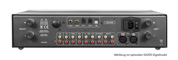Optional können die Digitalboards DA200 (2x optisch u. 2x coax SPDIF, Bluetooth und USB), DA150 (wie DA 200, aber ohne Bluetooth) sowie DA100 (nur mit 2x optisch und 2x coax SPDIF) eingebaut werden.